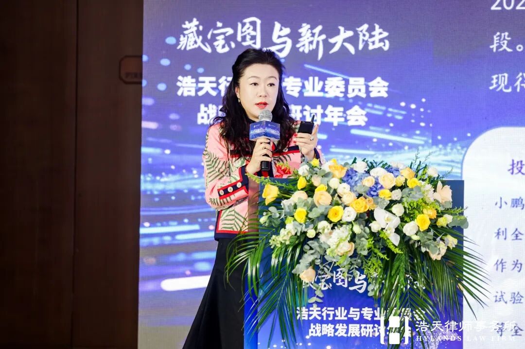 能源与自然资源行业委员会赵阳律师从国家能源安全与绿色转型的战略高度出发,强调专业委员会必须成为行业委员会的深度支撑。她以“电力交易合规”等具体场景为例,倡导建立“小而专”的协同模式,旨在构建覆盖关键资源的全域法律服务能力,为国家能源战略提供浩天方案。