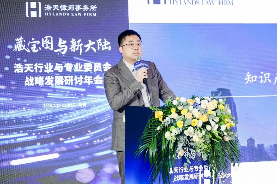 知识产权专业委员会周汉律师分享了专委会在承前启后中的思考、实践与未来蓝图。周汉律师介绍,过去一年,知识产权专业委员会通过重启“大知产”专业窗口、以主题特刊等形式强化浩天品牌发声、优化内部评奖机制等方式夯实基础,增进协同。2026年,委员会将聚焦市场热点,持续巩固专业输出,计划战略性拓展与顶尖艺术、体育类院校的公益合作与课程开发,积极融入行业生态圈,提升浩天在垂直领域的影响力。