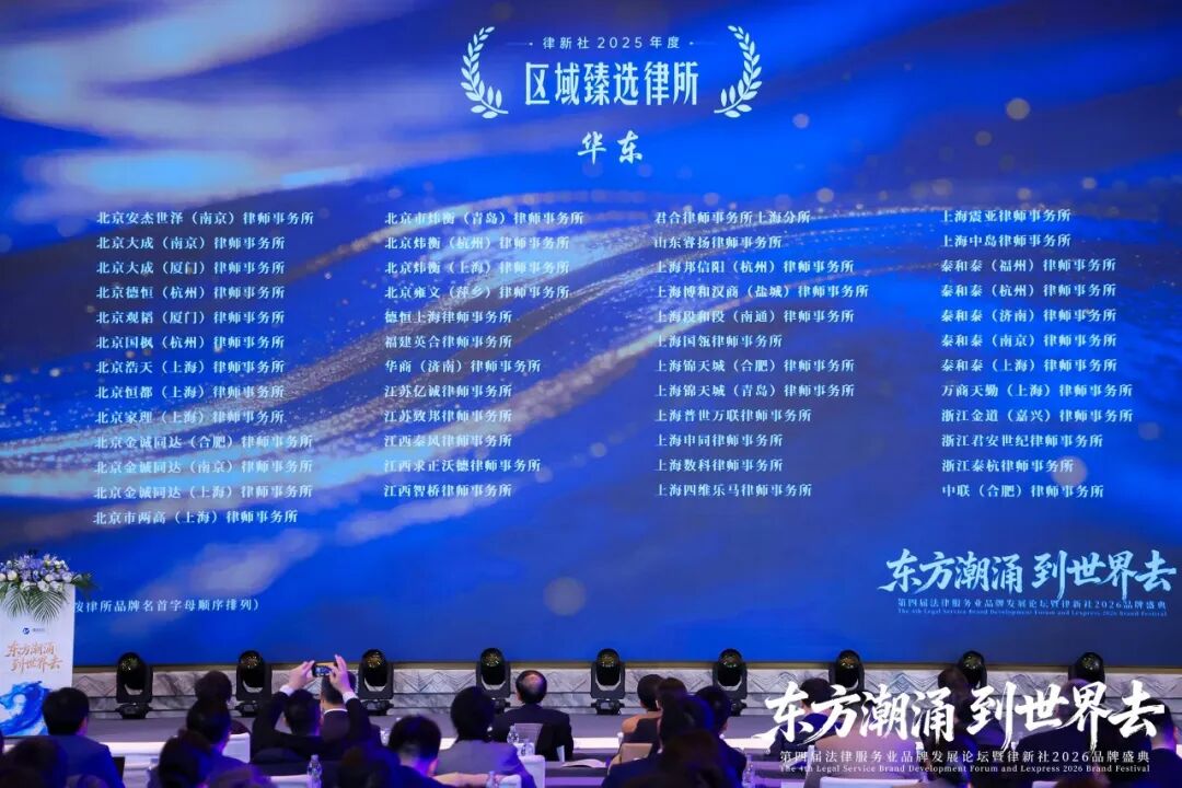 2026年3月13日至14日,“东方潮涌 到世界去”第四届法律服务业品牌发展论坛暨律新社2026品牌盛典在上海盛大举行。盛典现场律新社《律所卓越品牌影响力指南(2025)》十项律所大奖正式揭晓,“律新社2025年度风云榜:律界年度人物大奖”系列也同步亮相。