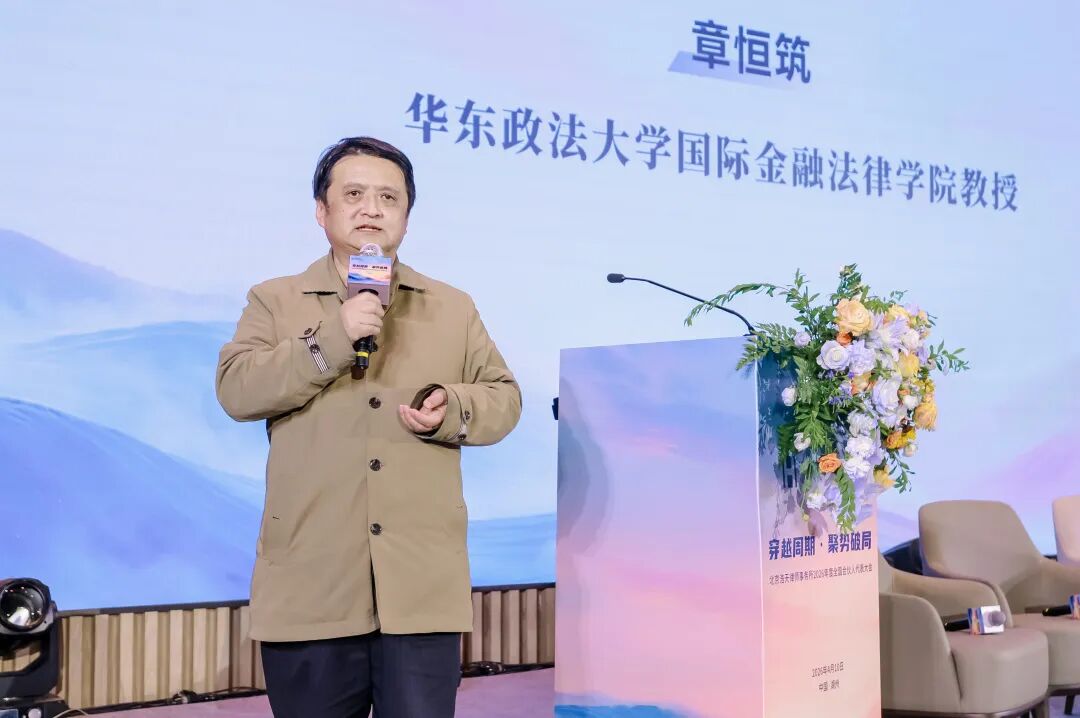 论坛伊始,华东政法大学国际金融法律学院章恒筑教授登台致辞。他以法学学者的宏阔视野,立足全球金融法治变迁与国内行业转型大势,深刻剖析新时代法律服务行业面临的变革风口与进化命题。章教授强调,法治服务的核心在于“守正”与“破局”的辩证统一,既要坚守法律人的专业初心,又要以开放的思维拥抱行业新需求、新机遇,为浩天专业委员会的协同发展指明了理论向度与实践方向,为整场论坛奠定了“行专破壁、协同向新”的思想基调。