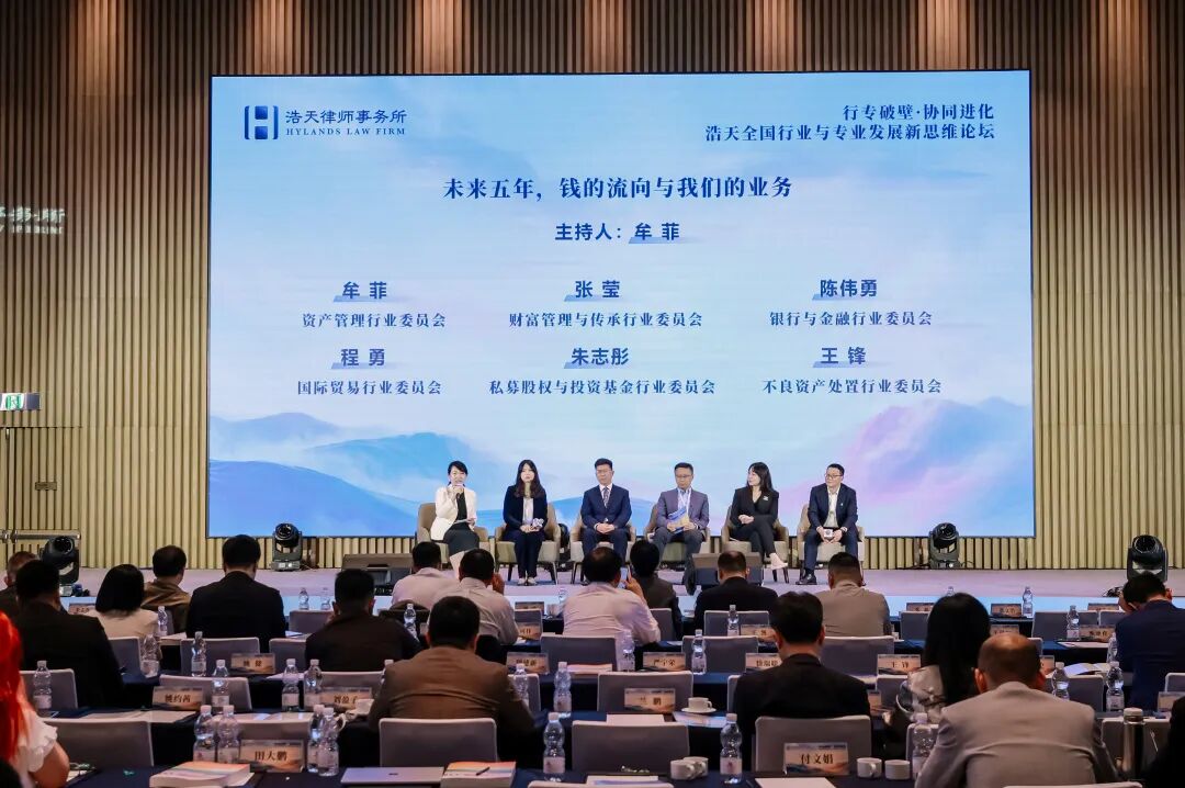 “未来五年,钱的流向与我们的业务”环节,由资产管理行业委员会牵头合伙人牟菲律师主持。资产管理、财富管理与传承、银行与金融、国际贸易、私募股权与投资基金、不良资产处置等行业委员会代表齐聚一堂。围绕主题展开热烈发言,大家紧扣资本流动新趋势,从客户深层需求出发,共同探讨如何重构服务价值链、紧跟资金流向挖掘业务蓝海,以全链条专业服务实现行业出新。