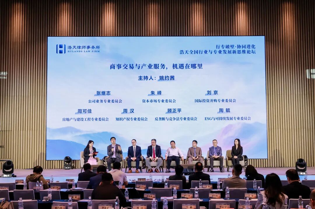 在行业趋势研判的基础上,论坛转向“专业深耕”篇章。这一板块立足新法新规的时代背景,聚焦专业委员会的市场拓展与服务创新,以“专业深耕”筑牢发展根基,以“协同进化”突破发展瓶颈,实现专业能力与市场需求的精准对接。“商事交易与产业服务,机遇在哪里”环节,由国际投资并购专业委员会牵头合伙人姚约茜律师主持。公司业务、资本市场、国际投资并购、房地产与建设工程、知识产权、反垄断与竞争法、ESG与可持续发展等专业委员会代表围绕核心议题进行了深入探讨。大家系统分析了新法新规对市场格局的重塑影响,一致提出要通过专业细分与技术赋能,创新法律服务方法,以精准的专业深耕应对市场变迁,在变局中确立核心竞争优势。