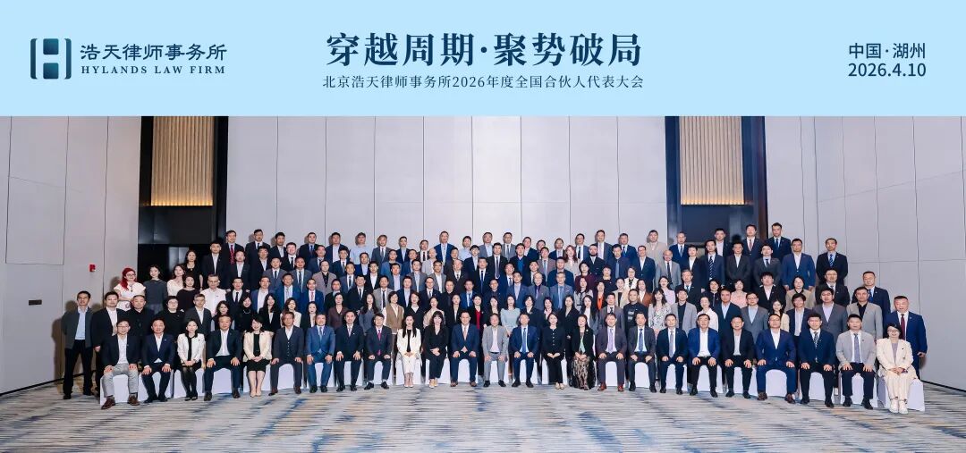 烟雨润南浔,苕溪文脉长。2026年4月10日,北京浩天律师事务所2026年度全国合伙人代表大会在浙江湖州隆重举行。湖州作为近代法学家沈家本故里,法治底蕴深厚、法治传承绵延不息,大会选址于此,将本土法治文脉与律所发展使命深度融合,全国合伙人代表齐聚一堂,复盘发展成果、共商发展大计、擎画未来蓝图。