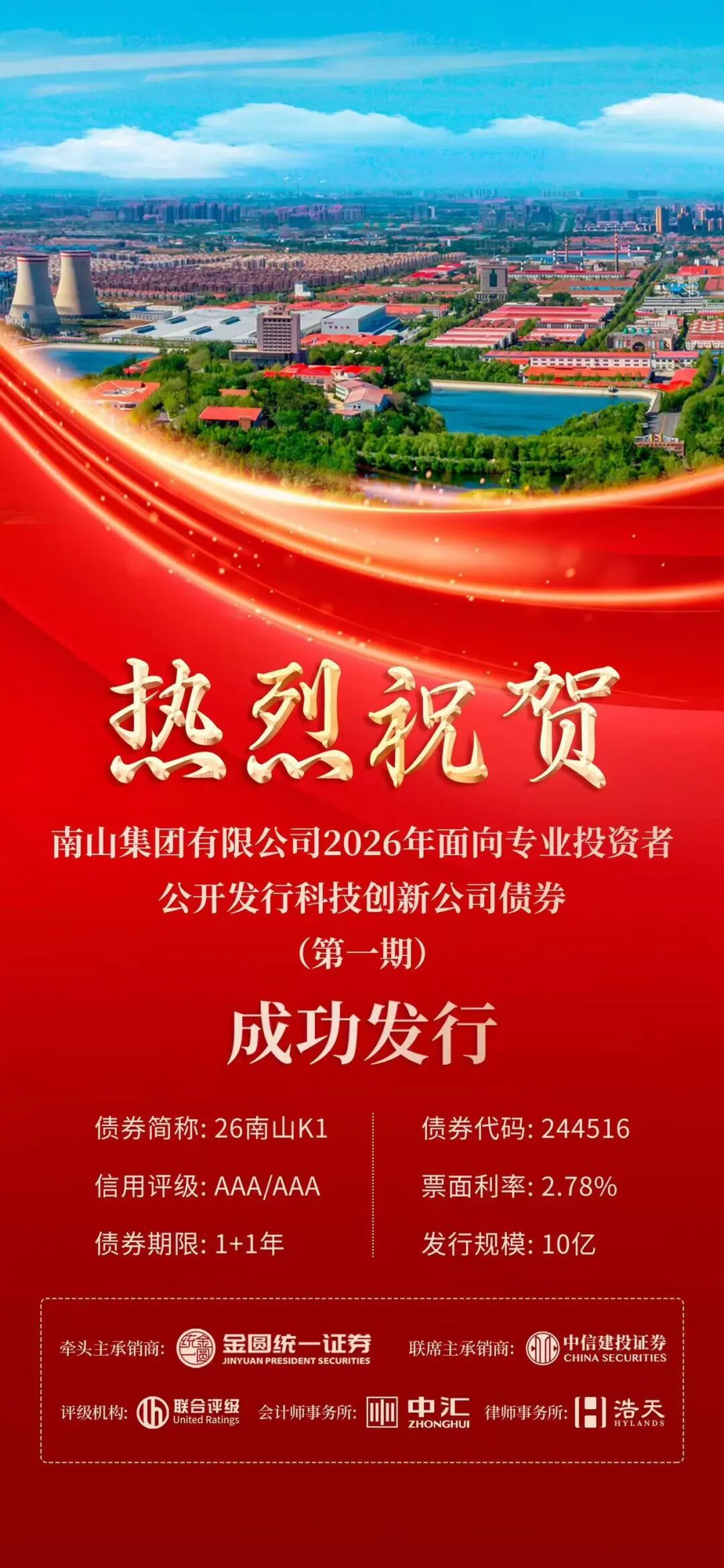 浩天助力南山集团公开发行不超过60亿元公司债券注册核准及2026年第一期10亿元发行成功