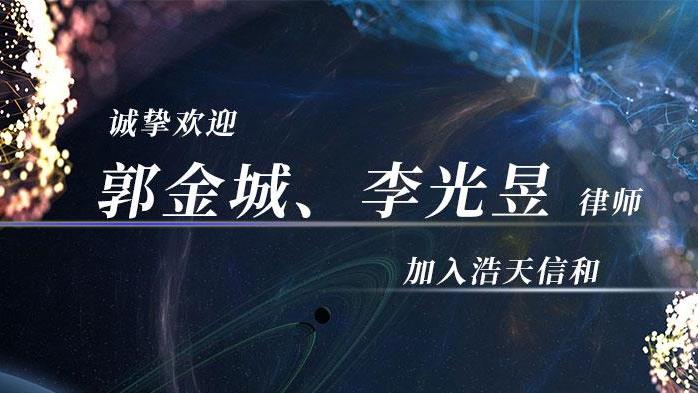 浩天信和诚挚欢迎郭金城、李光昱律师作为合伙人加入